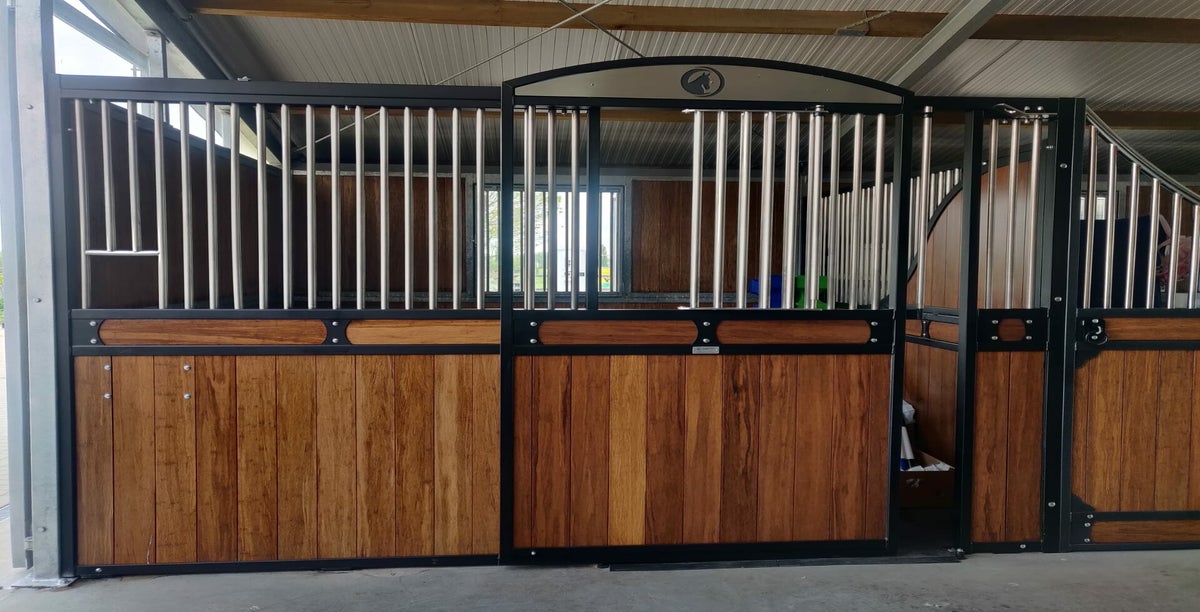 These bamboo boards are made from grade A bamboo fibres and have a density of 1.05 to 1.15 g/cm³, which is 2.5x harder than oak. Harder than many tropical hardwoods, so the horse cannot bite into the material and the horse cannot break the boards by kicking it with its hoof.
